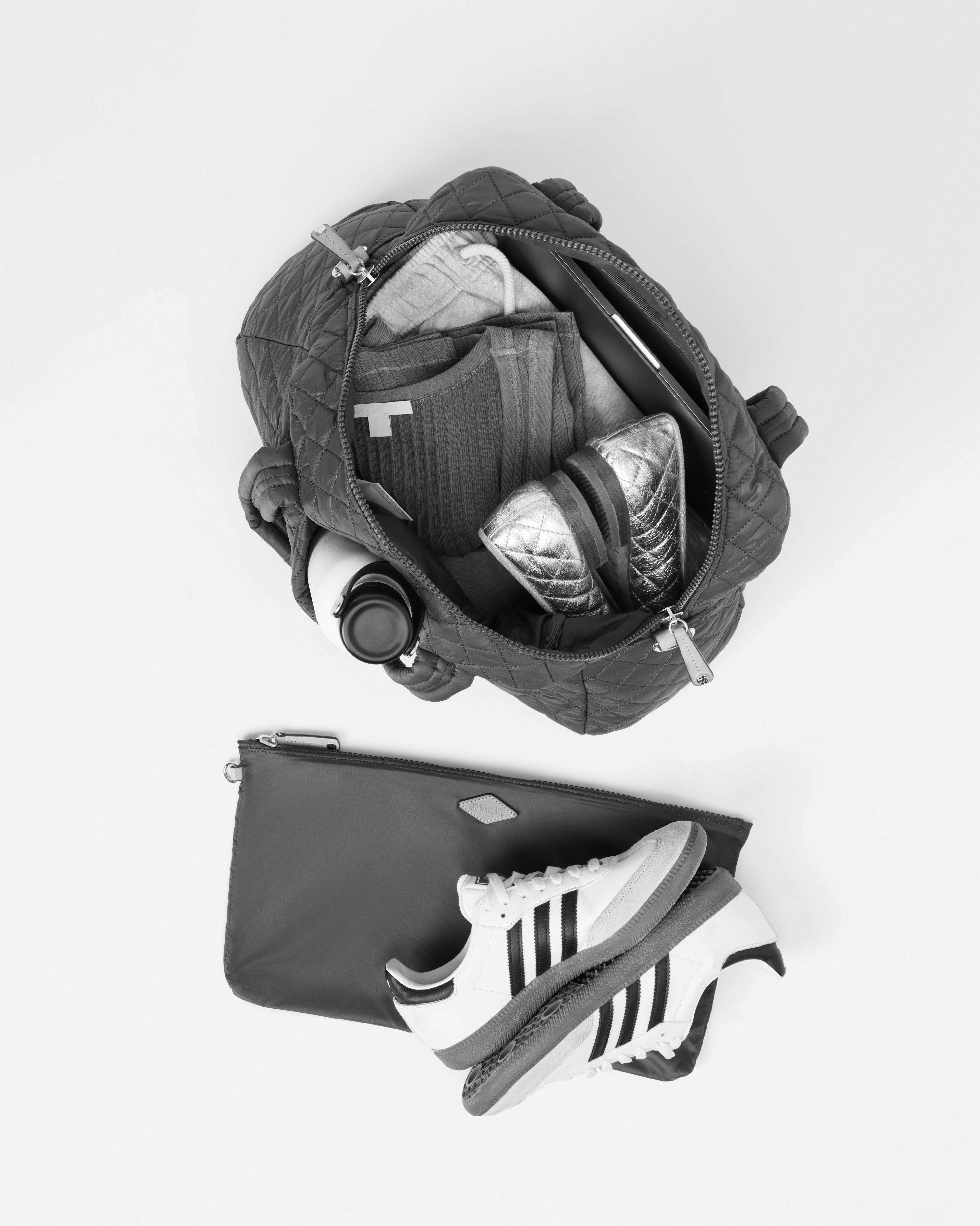 MZ Wallace Black Quilted Duffle Travel Bag